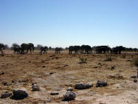It’s a Saturday afternoon. All is calm at the Arcaro Rest Camp; the house is cleaned and put back in order after two weeks of vacations and visitors. I made cinnamon rolls for a late breakfast, we’ve been reading a new supply of New Yorker and Smithsonian magazines from Zac’s grandparents, and thanks to a digital thermometer received from Zac’s mom, I now know that the temperature is 81.3 degrees F outside (ah…winter in Namibia). We’re living a life of luxury—surrounded by our books, stockpiles of food, and nifty gadgets. Yet a sense of dread hangs over our house, some impending doom lurks in the numbers on the calendar… Yes folks, it’s time for school to start again. Somehow our whole month of vacation has dwindled away to nothing. In an attempt to procrastinate on my lesson planning, to clutch at past joys fading away, I’m going to tell you about our last week of vacation, a time of elephant ballets and encounters between traditional and modern life. Namibia is a country of luck. As we learned on our trip to Brandberg Mountain, where all planning and preparation is futile, luck takes over and things have a magical way of working out. So it was lucky that one of Zac’s roommates from college, Craig, and his friend, Ari, met our fellow volunteer Jacque at the same backpacker hostel in Swakopmund (the coastal “resort” of Namibia). Craig and Ari had been doing botanical field research for Craig’s uncle in South Africa for three months and had rented a car and were now traveling through Namibia, planning to spend three days at Etosha after Swakop. Jacque gave them our cell phone number, Craig called us, plans were made and Tuesday evening we welcomed Craig and Ari as the first visitors from home to the Arcaro Rest Camp. Early Wednesday morning found us cruising down the unmarked, dirt road to the northern Etosha gate in a white corolla, expertly driven by Ari. We saw all of the usual grazing animals in the large veldt preceding the forested area of the park and it was looking to be a typical visit to Etosha. However, on the Stinkwater loop that diverges from the main road, we came around a small bend and into view of an enormous butt. At first I thought it was an elephant butt, but elephants butts are quite saggy and wrinkly, whereas this one was relatively firm. By this simple process of elimination, we quickly determined that we were gazing at a rhino butt. Now, rhinos are one of the big five, and you’re quite lucky if you see one, especially this close. However, rhinos have their hazards, as they are known to be quite territorial and fond of charging. Furthermore, the rhino was bigger than the corolla. Nevertheless, we kept slowly creeping up on the rhino, who was sauntering down the middle of the road, with the contingency plan of “throwing the car in reverse and flooring it” should the rhino decide to charge. Eventually the rhino moved off the road to eat some grasses, still seemingly unaware of us, and we followed beside it for quite some time. But when it started to look at us in an annoyed-rhino sort of way, we decided to keep going rather than be mauled. A little before lunchtime, we stopped at a water hole close to the Namutoni rest camp. There were about 8 different vehicles there, all with the engine cut and white people inside looking intently at a completely deserted water hole, some with binoculars. My first instinct was that there were lions nearby, but after perusing the area with our binoculars and seeing absolutely nothing, I decided that all these people were simply insane. We were just preparing to leave, when there was some commotion to the left—and out of the bush came a long line of elephants, jogging eagerly to the water hole. All 18 of them lined up on one side, facing all the cars, and enthusiastically partook of the refreshing water. I felt like we were watching some sort of performance—I kept waiting for a voiceover to start explaining the social structure of the herd or something. After a relaxing, greaseful lunch at the Namutoni restaurant, we headed back out, with the plans of camping at Halali (the middle of the three rest camps) that night. It was an uneventful stretch of road, but we did see many birds that we hadn’t seen before during Solomo’s 100km/h death-drive through the park. We also saw a spotted hyena guiltily lurking around a large exposed rib-cage. The car evidently frightened it, because it took a large bone in its mouth and walked off into the bush. We reached our destination of Halali around 5pm, chose a camping spot, pitched our tents, then walked out to the camp’s own waterhole. The waterhole was located below a dolomite outcrop that supported benches for the tourists to sit on, and I had the feeling of being in an outdoor amphitheater. We arrived at the waterhole at dusk; the cloudless sky was just turning a deep blue while the horizon seeped glowing orange. All the visitors sat silently, with a reverential hush that reminded me of the part in the church service right after communion but before the collection. Like earlier that morning, everyone was intensely looking at a completely lifeless waterhole. Once again, I felt that the joke was on us—that all the animals were hiding in the bushes looking at us through their binoculars. But then the show began. Act 1 (Scene 1): As it grew darker, a flock of birds descended on the water hole with chirps like the opening symphony. (Scene 2): A herd of 10 elephants came lumbering out to the water. The lead elephant ran around the water, sending the birds noisily flying. The elephants circled the waterhole and engaged in their water-drinking charades. One baby elephant had a very itchy trunk, and kept rubbing it up against one of the rocks. Another elephant sauntered onto a small isthmus reaching into the center of the pond and defiantly deposited several large plops of dung at the water’s edge. A group of elephants were drinking side-by-side when an elep